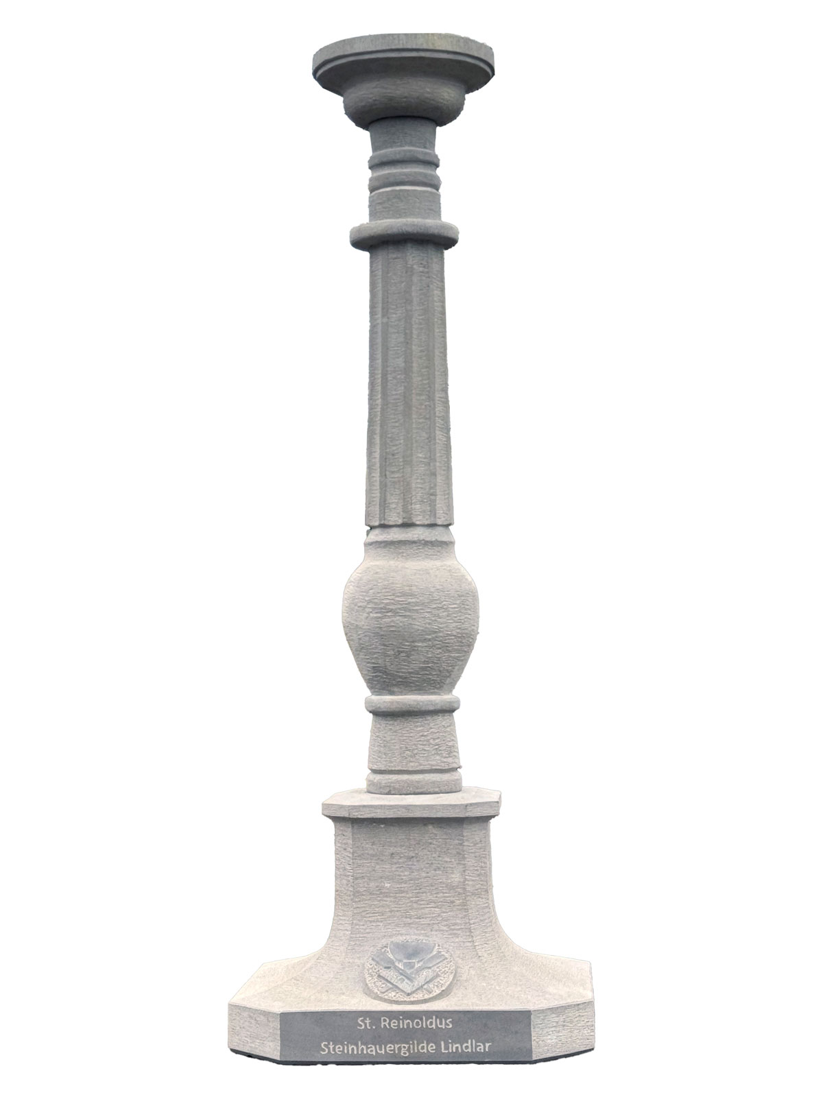 Der Kerzenständer wurde für die St. Reinoldus Steinhauergilde in Lindlar angefertigt. Gewidmet dem Schutzpatron der Steinhauer. Der Kerzenständer darf jährlich am 07. Januar, dem Jahrestag des St. Reinoldus in der Kirche St. Severin in Lindlar, angezündet werden. Die Kerze ist ein Zeichen des Schutzes für die Steinhauer.
